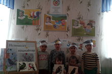 Балалар белән бакчада кошлар көне үткәрдек.Кошлар белән таныштык, табышмаклар чиштек,шигырьләр сөйләдек,уеннар уйнадык.-Вместе с детьми провел день птиц..Познакомились с птицами,отгадывали загадки, рассказывали стихи и играли в разные игры.