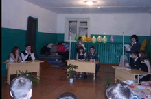 Ученики школы поздравили учителей с праздником. Силами учащихся был подготовлен концерт.