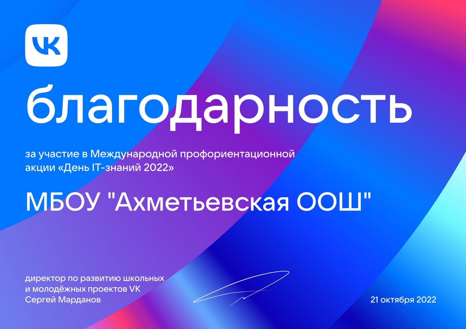 Опубликовано: 24.10.202221 октября в школе прошел День IT - знаний. Цель Мероприятия – планирование профессионального будущего школьников, в том числе связанного с ИТ-сферой, а также развитие кадрового потенциала в области цифровой экономики.