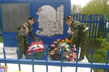Мәктәп укучылары Бөек Җиңүнең 71 еллыгы уңаеннан яуда һәлак булган авылдашлар өчен салынган обелискка веноклар куйдылар. 08.05.2016