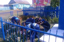 Мәрхәмәтлек аллеясы. Укучылар тарафыннан Бөек Ватан сугышында һәлак булган авылдашлар истәлегенә куелган обелиск тәртиптә тотыла. 15.09.2015