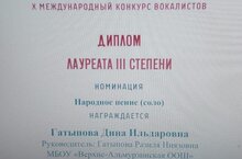 "Сандугач- Соловей" Х Халыкара вокалистлар конкурсында катнашып Гатыпова Динә 3 дәрәҗәдәге лауреат исеменә лаек булды