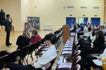 Парламентский урок, посвященный Году родных языков и народного единства на тему "Татарстан наш общий дом. Единство народов, культурное и языковое многообразие, как уникальное богатство республики". Урок прошел в 10А классе под руководством учителя истории и обществознания Кашлаковой М. Е. Почетным гостем стал глава Альметьевского муниципального района Нагуманов Тимур Дмитриевич. Интересной частью урока была работа детей с текстом конституции РТ, когда дети самостоятельно выделяли статьи направленные на поддержание национальной дружбы, веротерпимости и взаимного уважения друг другу.