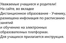 С 06.04.2020 г. начинается 4 четверть 2019-2020 учебного года. С 06.04.2020 г до 30.04.2020 г. (или до особого распоряжения) в школе вводится обучение с применением электронного обучения и дистанционных образовательных технологий.