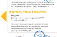 1 июня 2020 года стартовал конкурс творческих работ для педагогов «Зирәк остаз».Поздравляем Шарипову Резеду Башировну с победой в данном конкурсе!