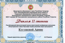 В г. Бугульма 25апреля прошла республиканская филологическая конференция НПК им. Я. Гашека. Ученица 10 «А» класса Кугушева Арина приняла участие и заняла 2 место. Поздравляем ее и желаем дальнейших творческих успехов!