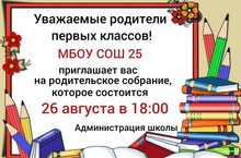 Уважаемые родители первых классов, приглашаем вас на родительское собрание, которое состоится 26 августа в 18:00!