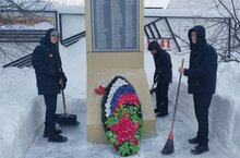В канун Дня героев Отечества «Волонтеры Победы» почистили от снега памятник и обелиск.