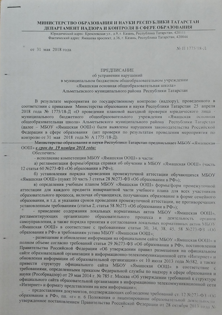 Предписание об устранении нарушений