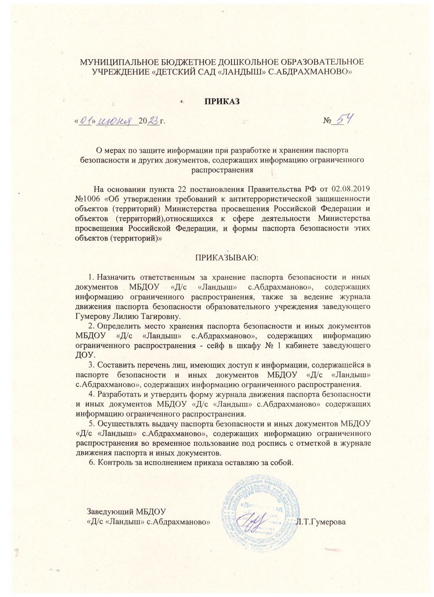 - Приказ о дополнительных мерах по активизации антитеррорестической деятельности