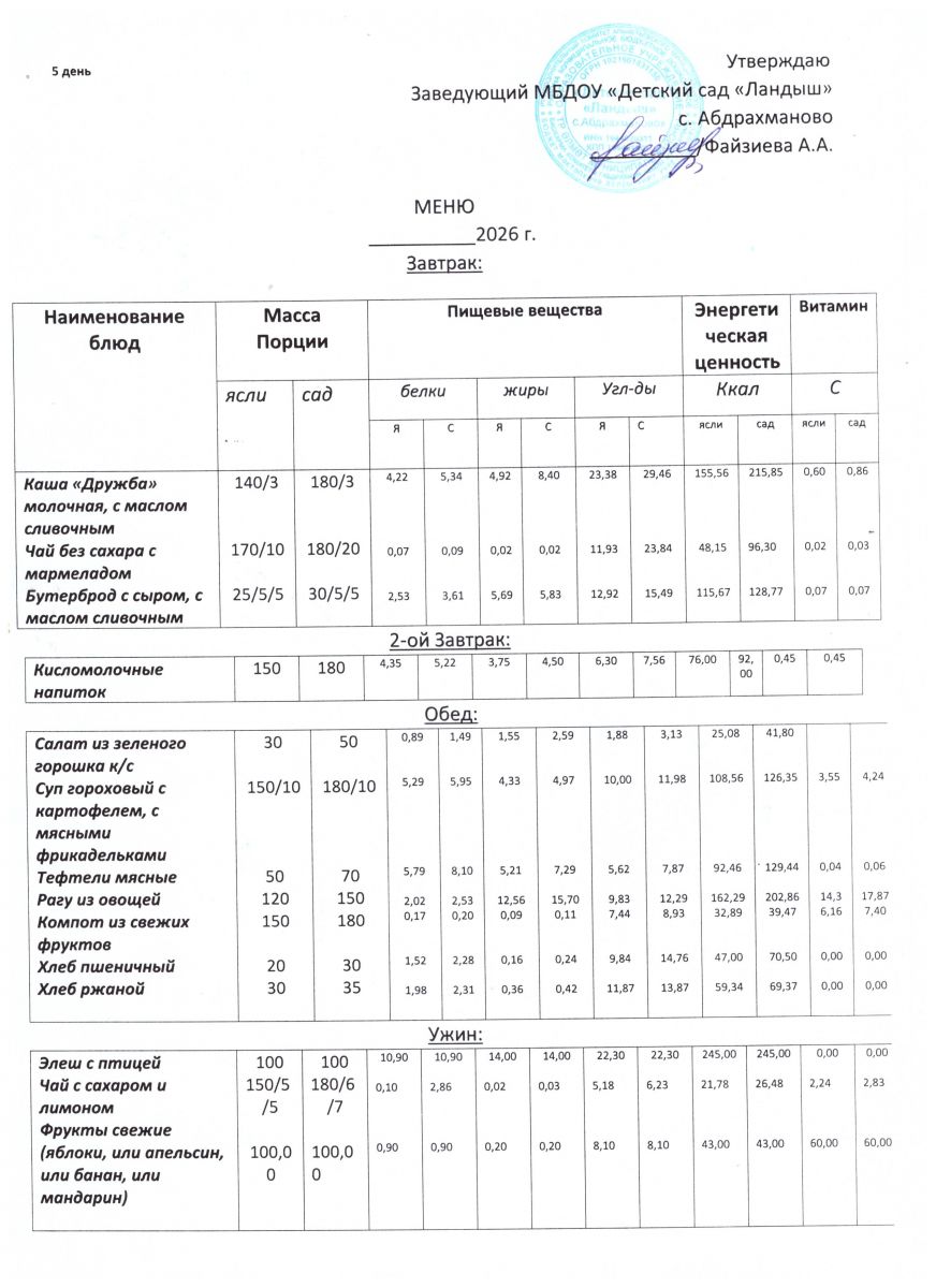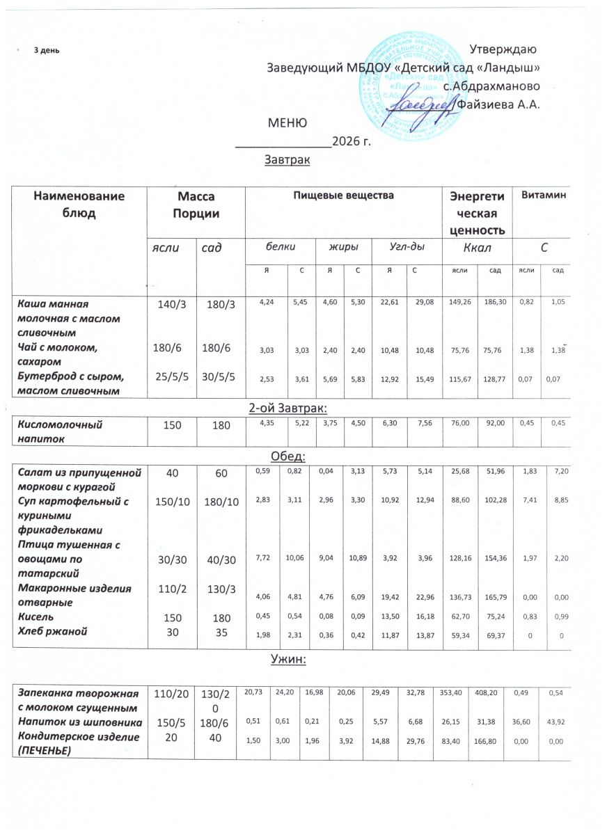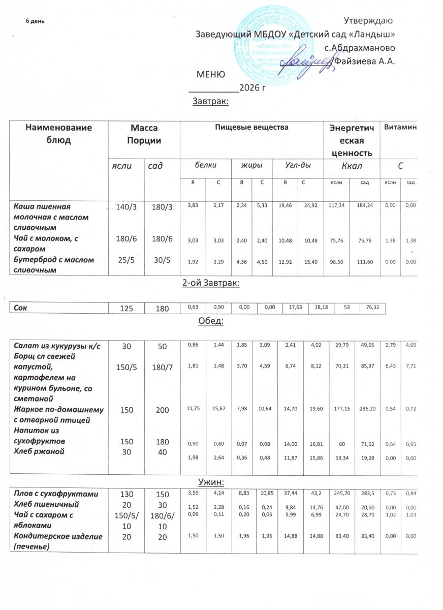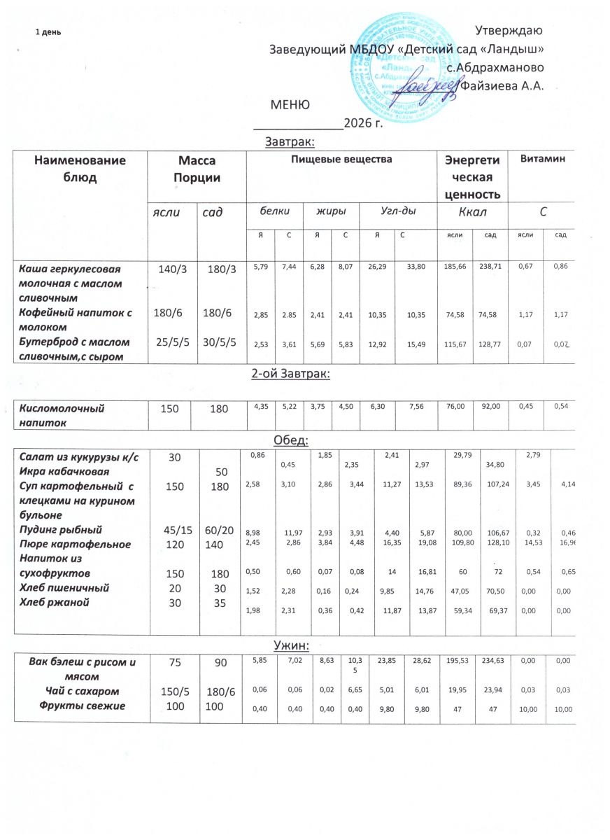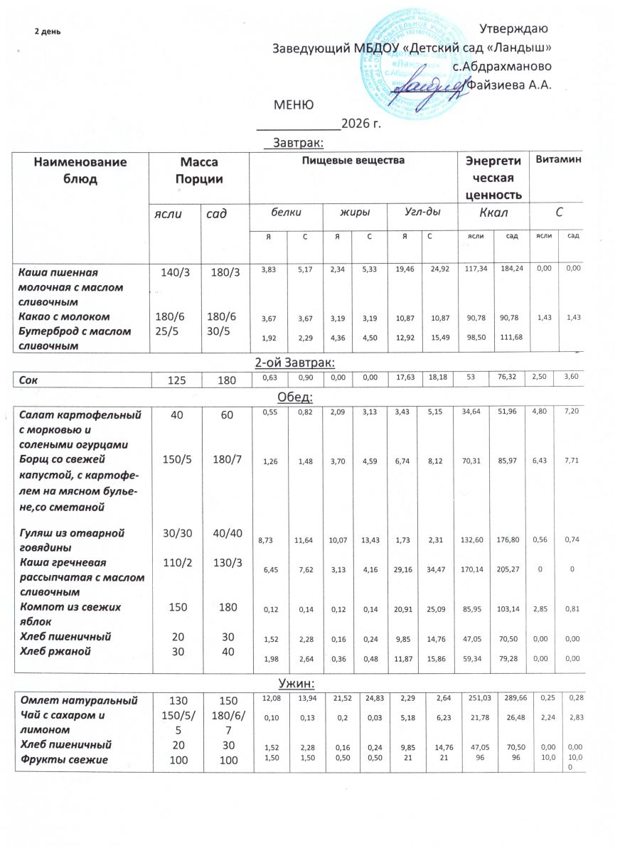 Меню ежедневного горячего питания