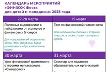 с 27 по 31 марта 2023 года в рамках Недель на странице «Мои финансы» в «ВКонтакте», в телеграм-канале «ФинЗОЖ эксперт» и на портале моифинансы.рф будет запущен образовательный фестиваль «ФинЗОЖ Фест для детей и молодежи». Недели ориентированы на школьников, студентов первых курсов, а также их родителей и педагогов общеобразовательных организаций.