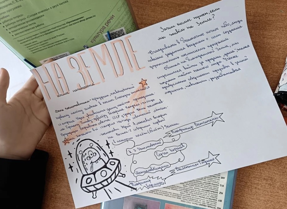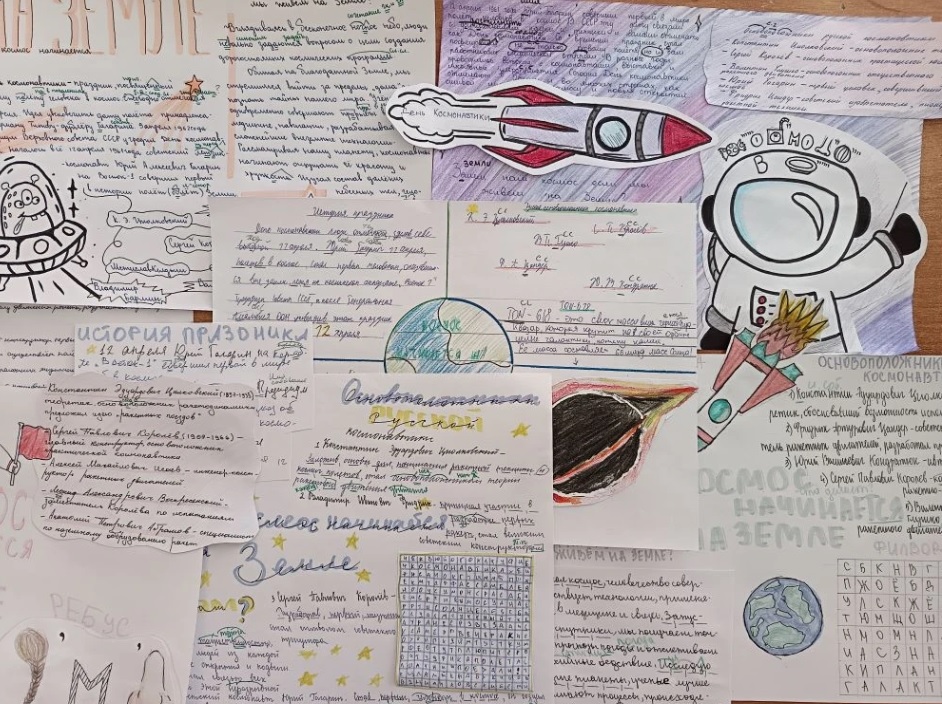 Опубликовано: 08.04.2026В Республике Татарстан проходит декада, посвящённая памяти Юрия Гагарина — первого человека, покорившего космическое пространство. В рамках этого значимого события ученики 8А класса нашей школы выполнили творческую работу на тему «Космос: наука, искусство, мечты».