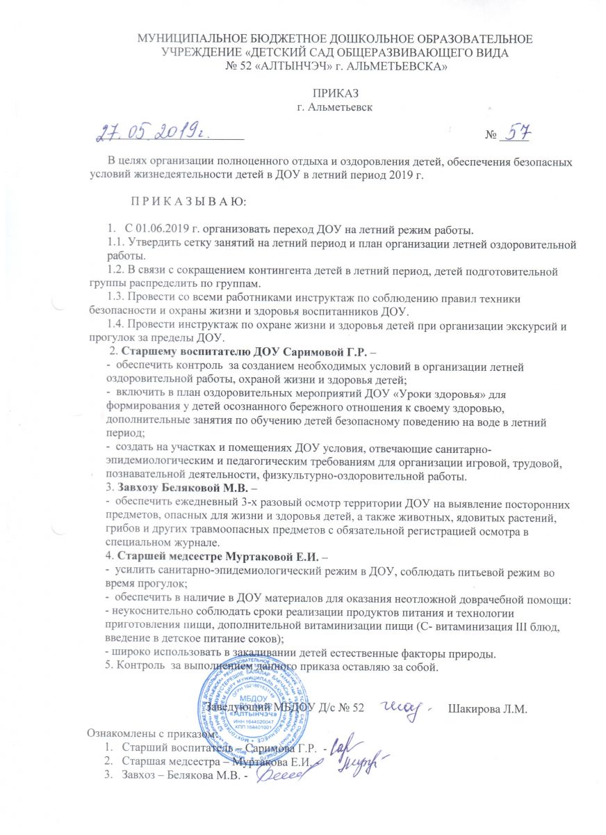 Приказ на летний оздоровительный период