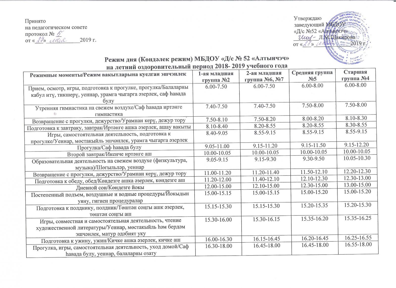 Режим дня на летний период 2019-2020