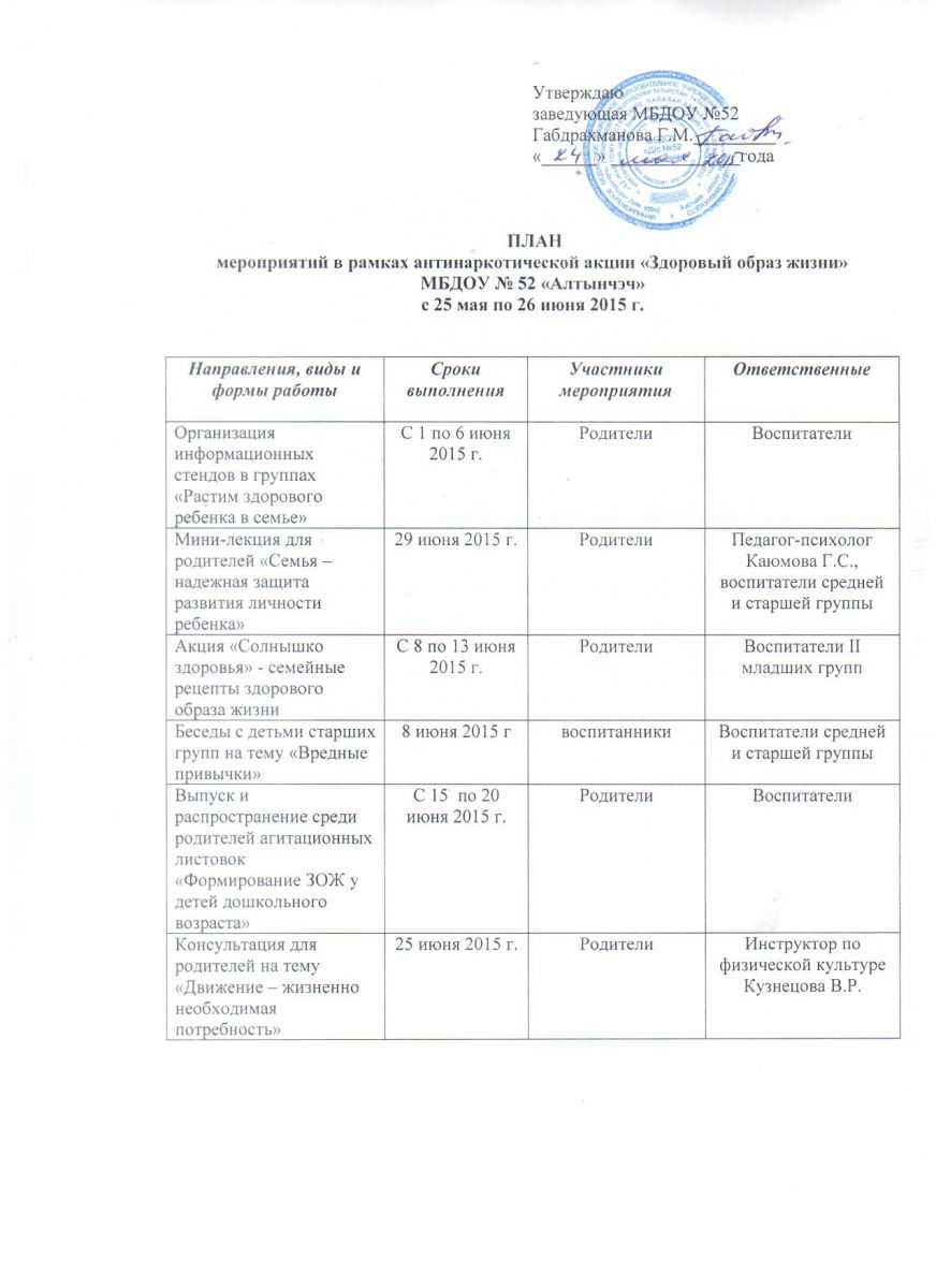 План мероприятий в рамках антинаркотической акции "Здоровый образ жизни"