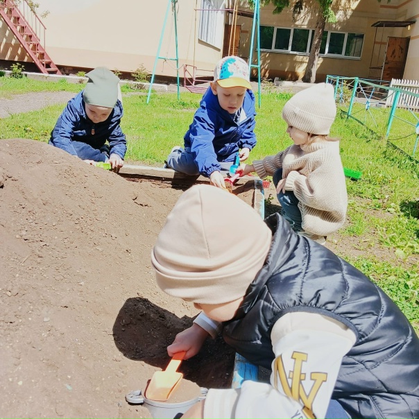 Дети младшей группы с удовольствием проводят время на песочнице. И вместе с воспитателем строят разные замки, лепят куличи. Знакомятся с разными тактильными ощущениями, развивают мелкую моторику.