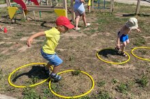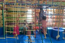 Ребята осваиваили многофункциональное пространство физкультурного зала. Инструктор по физической культуре Анис Ринатович подготовил интересные двигательные задачи, где ребята с удовольствием забирались на лестницы, скатывались с наклонных поверхностей, карабкались по верёвкам.