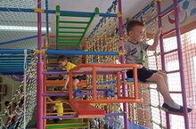 На 3D-комплексе дети двигаются в трех плоскостях — не только вперед и назад, но и по диагонали, вверх, вглубь, по лестнице, скатывается с наклонных поверхностей, карабкается по веревкам, пролезает в отверстия.