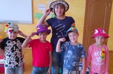 Головные уборы дети украсили цветами, бабочками, каплями, на которых добавлен элемент безопасности -дорожные знаки. Одним словом - о правильной жизни со всех сторон говорим, мастерим и показываем.
