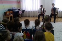 Сегодня к детям пришли в гости ученики детской музыкальной школы. Юные музыканты познакомили дошколят с разными музыкальными инструментами: баян, аккордеон, гитары, маракасы, фортепиано и др. и исполнили произведения отечественных композиторов: Маленькие зрители с восторгом приветствовали музыкантов, аплодировали после каждого номера и выразили желание встретиться снова.