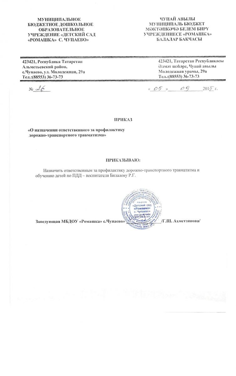 1.15 Приказ о назначении ответственного за профилактику дорожно-транспортно травматизма 2015 г.