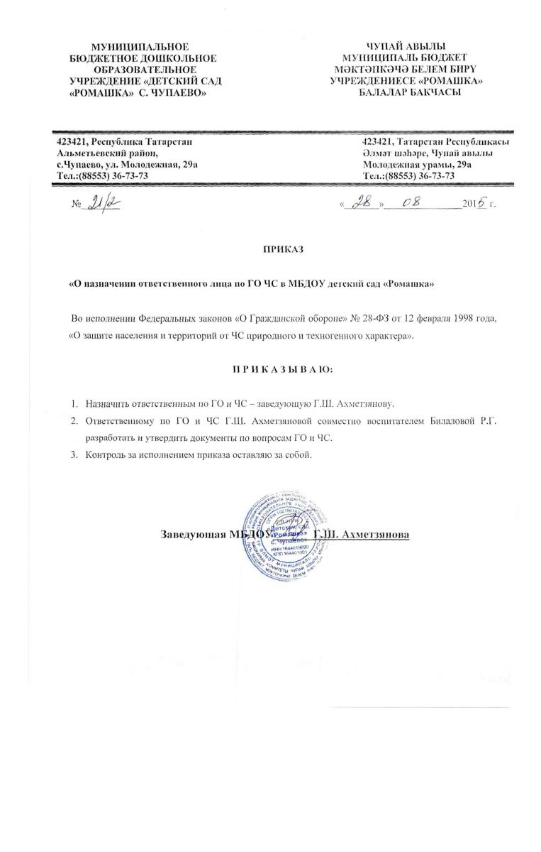4.8 Приказ о назначении ответственного лица по ГО ЧС в МБДОУ 2015 год