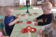 Продолжаем знакомство со светофором. Закрепляем с детьми значение сигнала светофора: красный, желтый, зеленый; учимся наклеивать круги на прямоугольник, чередуя их последовательность (красный, желтый, зеленый); развиваем внимание, память, речь, мелкую моторику пальцев рук, самостоятельность и аккуратность в работе, доводить начатое до конца.