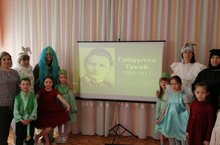 28 апреля в ДОУ прошел праздник, посвященный творчеству Г.Тукая. В гости к детям пришли герои из сказок писателя - Су анасы, Шурале, Кяжя белян Сарык, кубэляк. Дети вспомнили творчество великого татарского писателя и поэта.