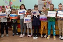 В день Российского флага дети младшей и старшей групп рисовали флаг нашей Родины, послушали о значении его цветов и о его истории.