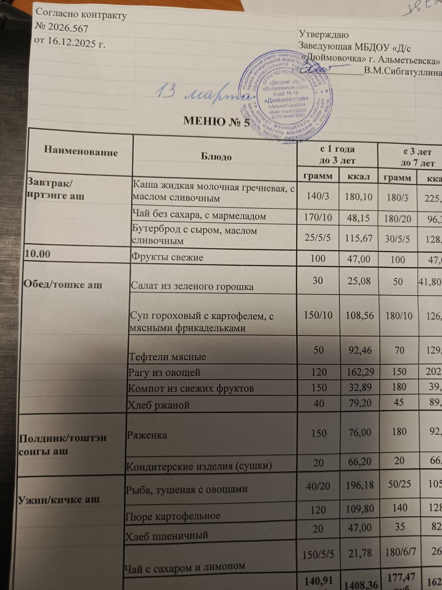 Ежедневное меню на 2026 год