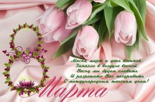 Дорогие женщины, бабушки и вся прекрасная половина человечества! От всей души поздравляем Вас с наступающим Международным женским днем 8 Марта! Пусть в вашей жизни всегда случаются приятные моменты, детки радуют своими успехами, здоровья вам, благополучия и мира!