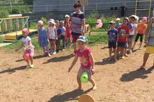 17 июля в МБДОУ №15 проходил праздник «Мы с тобою вдвоем из песка построим дом». Все возрастные группы детского сада расположились на спортивном участке и ждали начало праздника. Дети рассказали о правилах игры с песком: нельзя бросать песок в других или брать его в рот, разносить песок по участку, выбрасывать его из песочницы, ведь песочница это домик для песка. Затем закрепили свойства песка для изготовления построек в продуктивной деятельности с песком. Во время праздника дети делились на две команды, проходили эстафеты: «Кто первый наполнит ведро с песком»; «Водоносы»; «Найди клад». Праздник помог детям развить такие качества как ловкость, силу, быстроту, умение ориентироваться в пространстве. В завершении праздника дети совместно с воспитателями оформляли на участках свои песочницы.