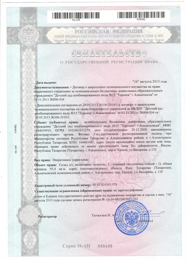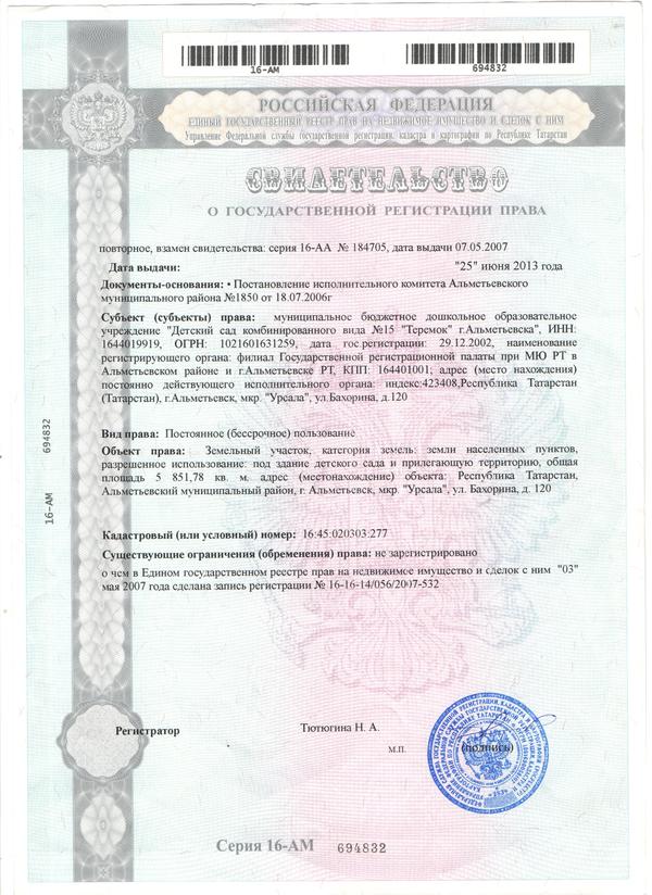 Правоустанавливающие документы//Хаклы урнаштырган документлар