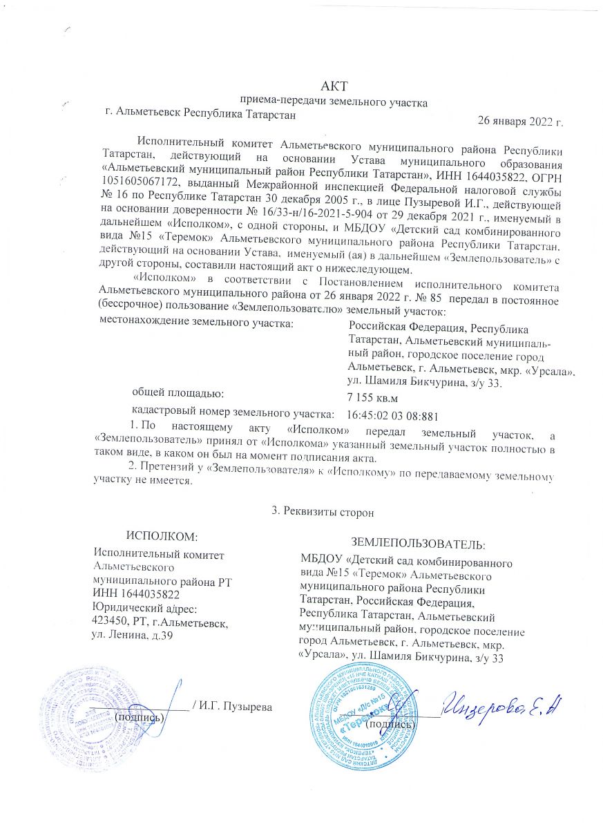 Муниципальное бюджетное дошкольное образовательное учреждение "Детский сад комбинированного вида № 15 "Теремок" Альметьевского муниципального района Республики Татарстан» / "Татарстан Республикасы Әлмәт муниципаль районының 15 нче номерлы" Теремок»катнаш төрдәге балалар бакчасы " Муниципаль Бюджет Мәктәпкәчә белем бирү учреждениясе
