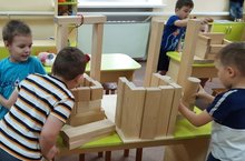 Занятия в средних, старших и подготовительных к школе группах по конструктивной деятельности с деревянным конструктором "бабашки" и "абрис" стали более содержательнее и продуктивнее. Они помогают детям изобретать, креативить, творить, создавать сложные конструкции, а главное реализовывать детские замыслы. На этой неделе воспитанники средних групп решали образовательные ситуации "Как мелкий колодец стал глубоким", а воспитанники старших групп "Что люди умеют делать из дерева"