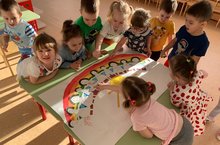 Младшие группы также не остались в стороне. В этот день они беседовали, смотрели театральные постановки, изготавливали плакаты о дружбе.