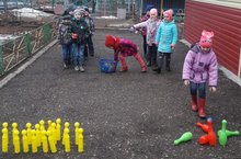 Продолжается месячник активной прогулки. Сегодня педагогами старшей группы №1 Волковой З.М. и подготовительной группы №2 Долининой Ю.П. с целью совершенствования двигательной деятельности детей на основе формирования потребности в движениях, были развёрнуты на площадках «Школа мяча» и «Школа кеглей». Нам знакомо много игр с этими игрушками. Однако можно развивать на основе использования этих спортивных пособий очень большое разнообразие игр. Такой подход к играм направляет внимание ребёнка на поиск нового, интересного, формирует умение видеть в каждом предмете разные функции.