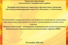Региональный семинар – практикум «Игровые технологии – полноценная мотивационная основа для развития дошкольников с ограниченными возможностями здоровья (ОВЗ)» 03.11.2020
