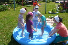 Наконец-то наступили теплые деньки!На протяжении всего лета педагоги детского сада организуют с детьми закаливающие мероприятия.