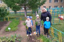 Педагоги и дети группы №4 собрали урожай овощей.