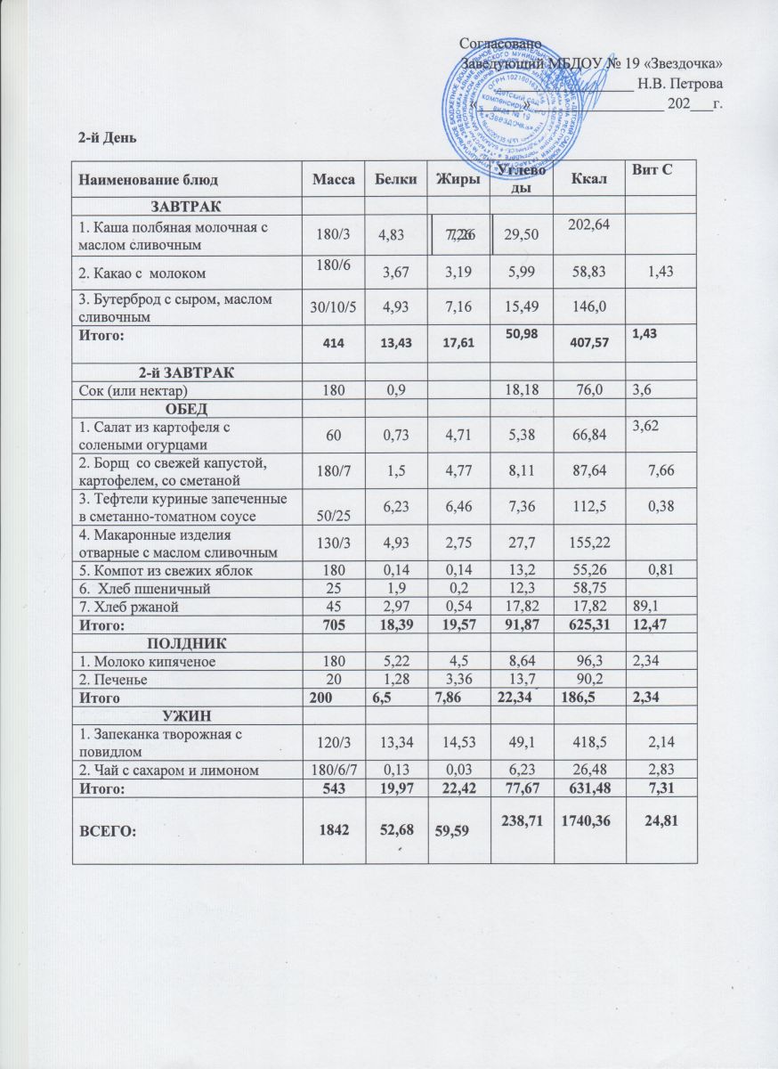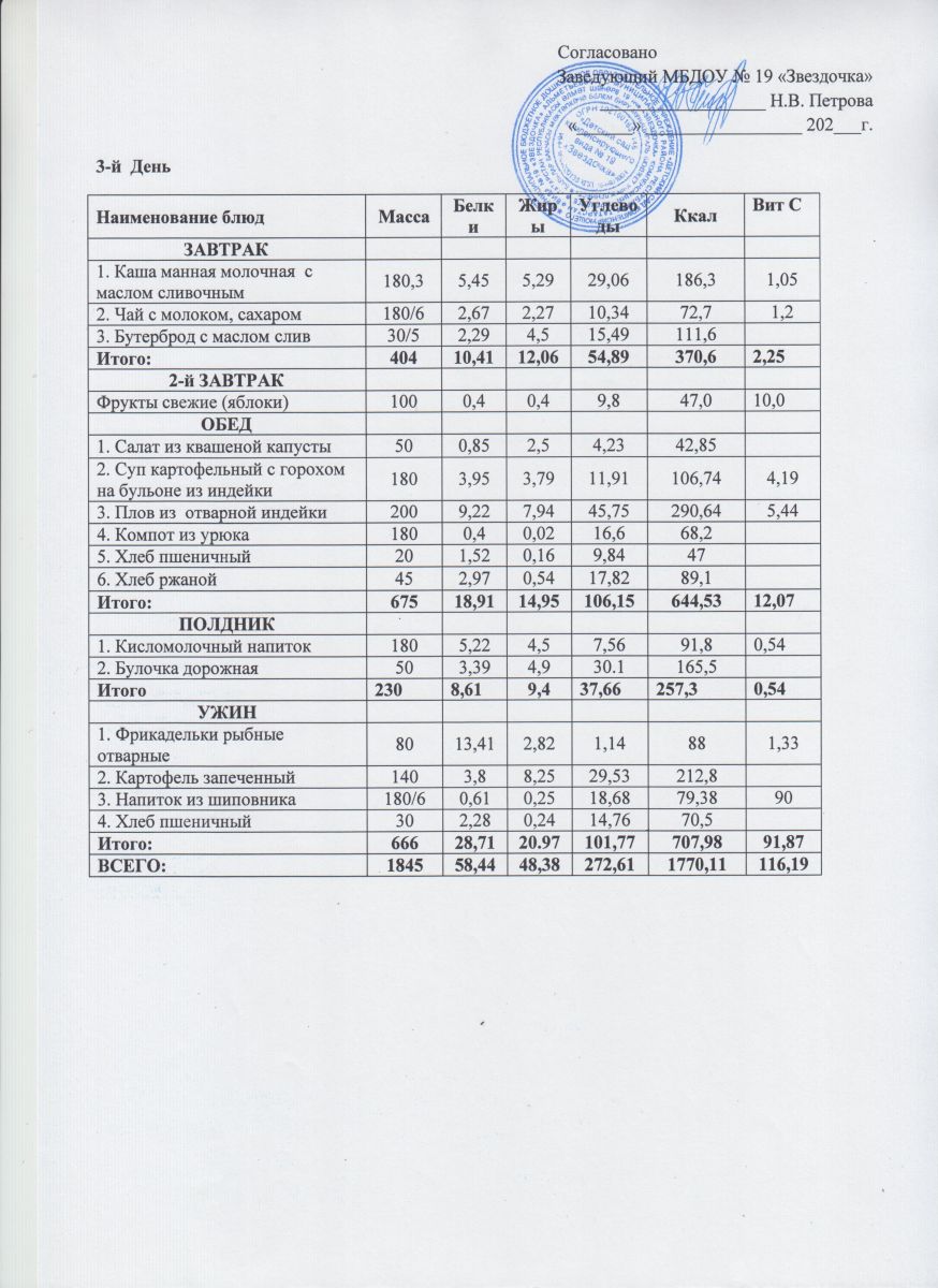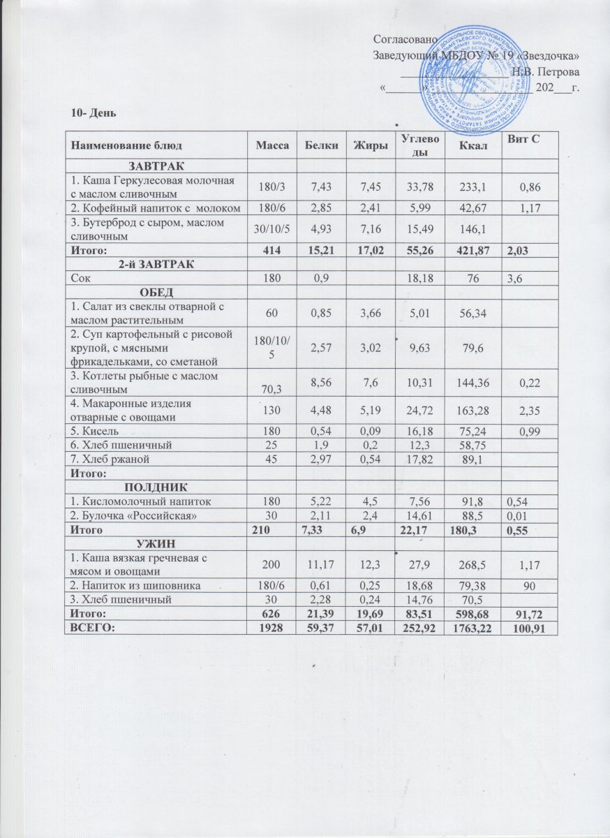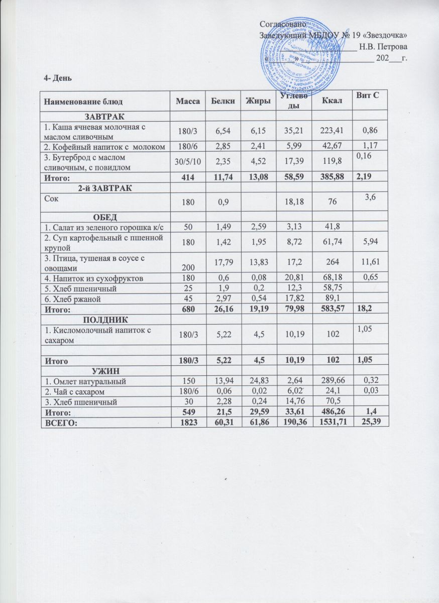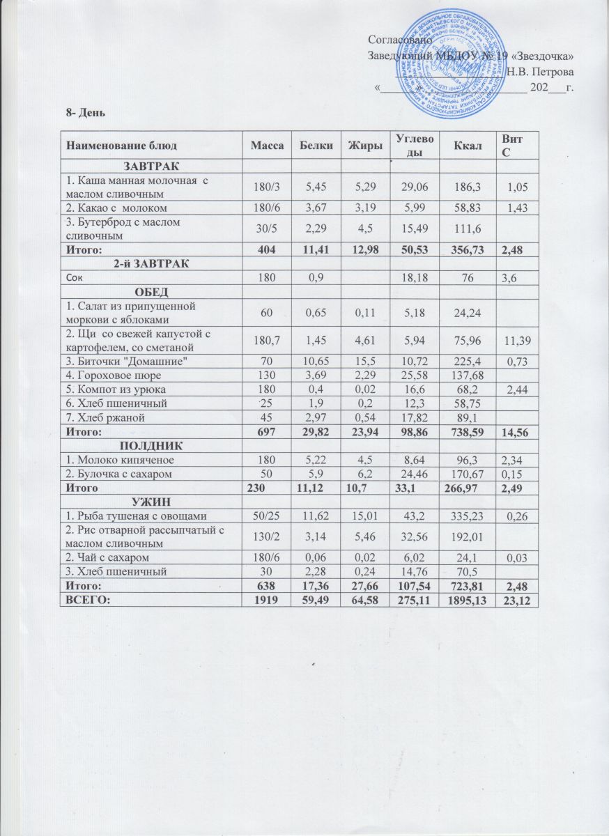 Ежедневное меню (июнь - август)
