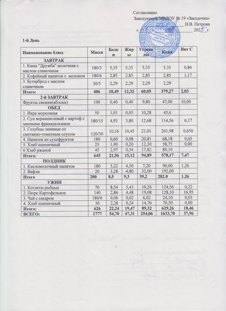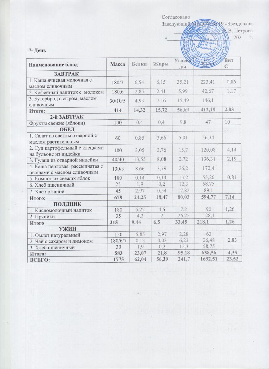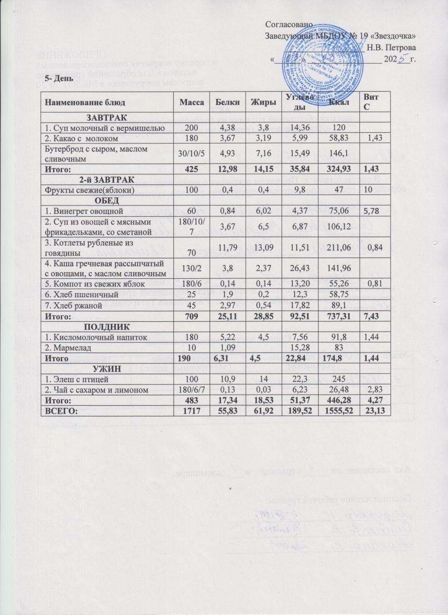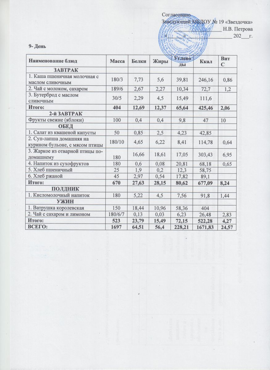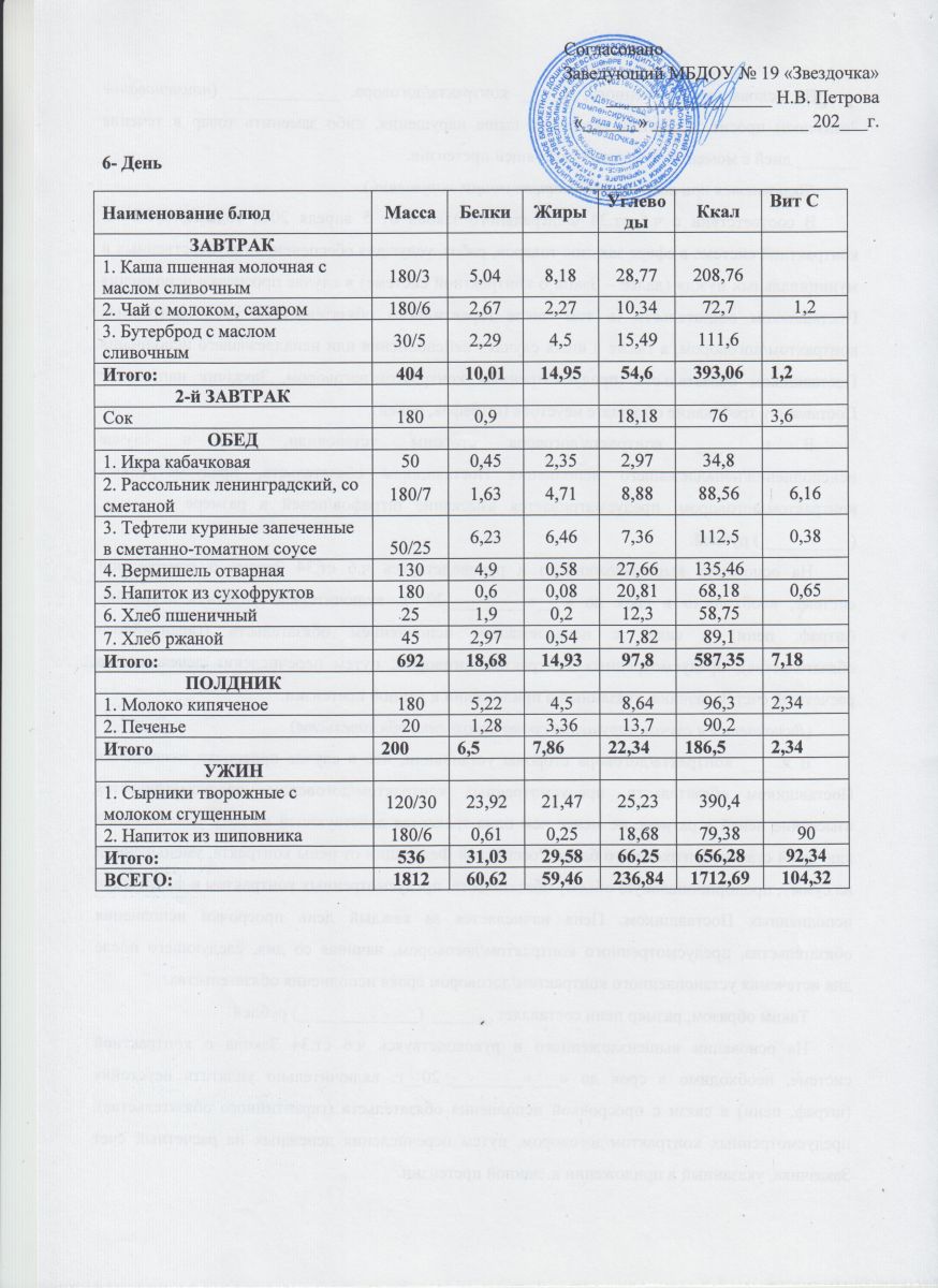 Ежедневное меню (июнь - август)