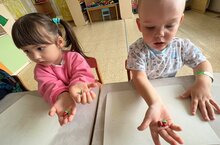 Цель: Продолжать знакомить детей с пластилином и его свойствами, закрепить умение прикреплять шарики к основе, заполняя ими заданное пространство.