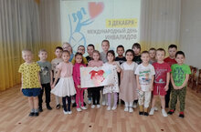 С целью воспитания толерантного отношения к людям с ограниченными возможностями в нашем дошкольном учреждении было проведено музыкальное развлечение "Доброе сердце" посвящённое Международному дню инвалидов. С ребятами были проведены беседы, просмотрен социальный ролик "про Диму". Воспитанники познакомились с понятием «особый человек» и заботливом отношении к таким людям. Во время бесед решались педагогические ситуации (уход за больным, оказание помощи), о том, как инвалиды стараются преодолеть свои физические недостатки, об опасных ситуациях. К ребятам в гости приходил Снеговик, который провёл интересные игры. Проведенное мероприятие вызвало у детей сочувствие и переживание, желание помогать детям – инвалидам не только в День инвалидов, но и поддерживать их, помнить о них в другие дни. -