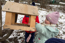 Зима – трудное время года для птиц. Ребята вместе с воспитателем решили повесить кормушки для зимующих птиц. Дети будут теперь приносить из дома семечки, пшено для голодных птиц. Развесив кормушки на своих участках, дети помогут некоторым птицам продержаться в зимние месяцы.