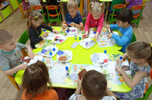 - Показать детям способ наклеивания путем чередования фигур.