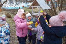 В детском саду ежегодно дети помогают птичкам, кормят их вкусными зернышками, тем самым прививая детям любовь ко всему живому.