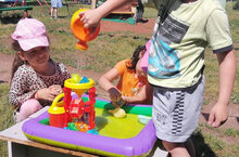Сегодня в нашем детском саду прошел национальный татарский праздник «Сабантуй». Весёлое празднование начали с национальных песен и плясок. Затем все воспитанники детского сада приняли участие в национальных играх: «Лисичка и курочка», «Бег с вёдрами», «Бой с подушками», «Перенеси яйцо в ложке», «Перетяни канат», «Скачки на лошадях». Ребята показали свою ловкость, смелость, силу и умения. Дети средней и старшей групп, соревновались на титул Батыр Сабантуя и на Сабантуй Гузэле. В честном поединке выиграли, Батыр - Садыков Радэль, Сабантуй Гузэле - Борисова Велена.