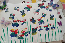 Ко Дню бабочек, ребята нарисовали коллективный рисунок. Задачи: продолжать развивать у детей интерес к рисованию нетрадиционными техниками.